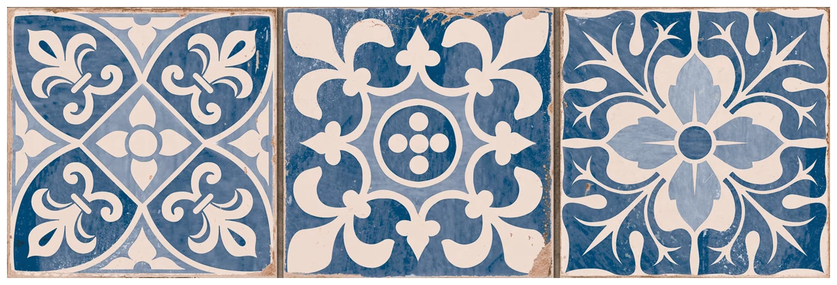 Listwa dekoracyjna patchwork łazienkowa i kuchenna z kolekcji Fs Faenza to interesująca propozycja dla tych, którzy szukają czegoś więcej niż jednolitego wzoru. Produkt oferuje zestaw trzech kafli o wymiarach 11x33 cm, każdy z unikalnymi, wyrazistymi motywami w odcieniach niebieskiego na jasnym tle. Wzory są zróżnicowane, ale spójne kolorystycznie, co pozwala na ciekawą aranżację wnętrza z elementem kontrastu i dekoracji.
