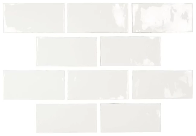 Memories White to mała glazura hiszpańska o wymiarach 6,5x13 cm, która wyróżnia się delikatnym białym kolorem. Jej powierzchnia jest błyszcząca, co sprawia, że płytki odbijają światło i subtelnie rozświetlają przestrzeń, w której zostaną ułożone. Nie jest to jednolity odcień - zauważyć można delikatne nierówności w połysku i lekko zróżnicowaną tonację, co nadaje powierzchni charakter i sprawia, że całość nie wygląda płasko.