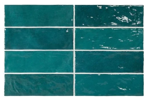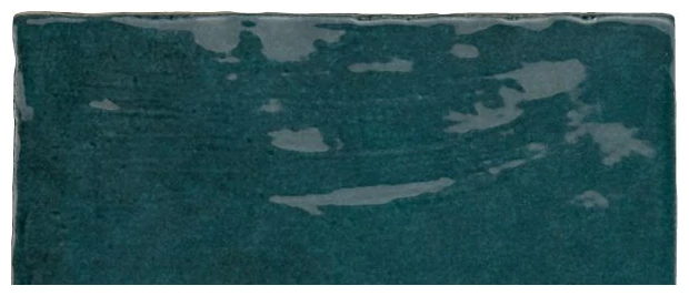 Płytka ścienna LA Riviera Quetzal wyróżnia się głębokim, nasyconym kolorem z odcieniem ciemnego turkusu. Powierzchnia jest błyszcząca, co nadaje jej wyrazistej obecności w przestrzeni. Charakterystyczna struktura, widoczna pod różnym kątem, wnosi dodatkowy wymiar wizualny - płytka nie jest całkowicie gładka, lecz posiada subtelne nieregularności powierzchni. To sprawia, że światło odbija się od niej w niejednolity sposób, co uatrakcyjnia jej wygląd i pozwala unikać monotonii.