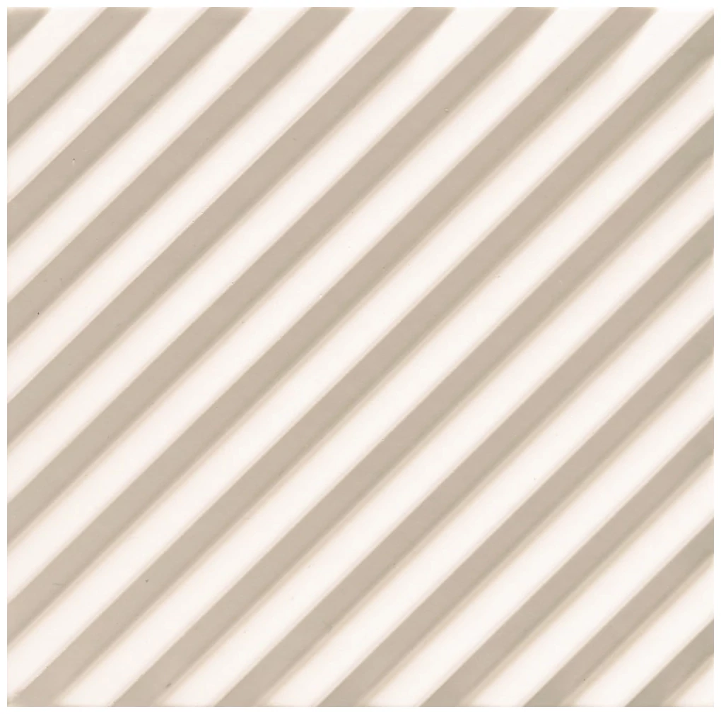 Płytka ścienna Dautore Enzo Bianco to przykład małej glazury hiszpańskiej wygodnej do zastosowań w kuchni czy łazience. Kafel o wymiarze 13x13 cm ma powierzchnię błyszczącą, co sugeruje łatwość utrzymania w czystości oraz nieco efektowne odbicie światła. Całość utrzymana jest w bardzo jasnej, kremowej tonacji bieli, z widocznym w detalach lekko żeberkowanym, diagonalnym wzorem. To nie jest jednolita, płaska tafla, lecz struktura z delikatnymi, równoległymi liniami, które dodają charakteru bez przesadnej dekoracyjności.