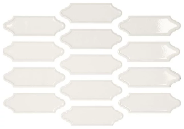 Drobne płytki Mecox Snow Crackled o wymiarze 5x15 cm to propozycja, która od razu zwraca uwagę swoją niestandardową, ozdobną formą. To nie jest zwykła, prostokątna glazura - płytki mają lekko zdobione, zgeometryzowane brzegi, które dodają im charakteru i oryginalności. Ich błyszcząca powierzchnia jest lekko postrzępiona strukturą crackle, dzięki czemu światło odbija się od nich z subtelną grą faktur. Biały kolor utrzymany w chłodnej tonacji sprawia, że płytka wprowadza świeżość i jasność, choć nie jest zupełnie płaska w wyrazie.