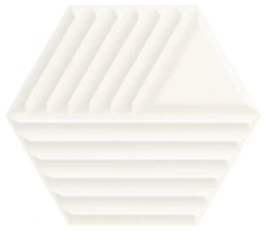 Woodskin Bianco Heksagon C STR to płytka ścienna o wyraźnym, heksagonalnym kształcie, która oferuje nietuzinkową powierzchnię dzięki specjalnej, strukturalnej fakturze. Matowa powierzchnia sprawia, że światło odbija się w sposób stonowany, co pozwala na tworzenie przestrzeni o subtelnej i wyważonej estetyce. Kształt sześciokąta nadaje ścianom rytm, pozwalając na ciekawe układy, nie popadając jednak w przesadę wizualną.