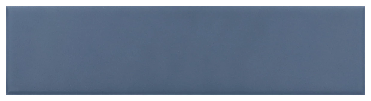 Ten model mały, w wymiarze 5x20 cm, prezentuje się jako gładka powierzchnia w odcieniu Banyan Blue. To nie jest intensywny błękit czy granat, ale bardziej stonowany, zrównoważony matowy niebieski, który dobrze współgra z różnymi aranżacjami. Matowa powłoka sprawia, że płytka nie odbija światła agresywnie, dzięki czemu ściana z niej wykończona nabiera subtelnej, ale wyraźnej faktury.
