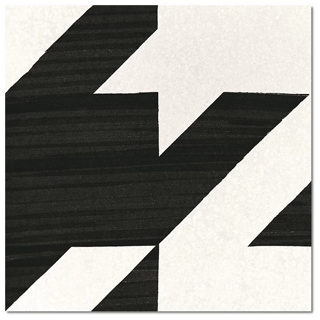 Geometryczny wzór na tej płytce jest czytelny i doskonale zaprojektowany, co pozwala na ciekawe kompozycje w układzie. Proste linie i wyraźne kształty kontrastują z białym tłem w matowym wykończeniu, tworząc estetyczne i wyraziste połączenie, które na pewno wyróżni się w przestrzeni.