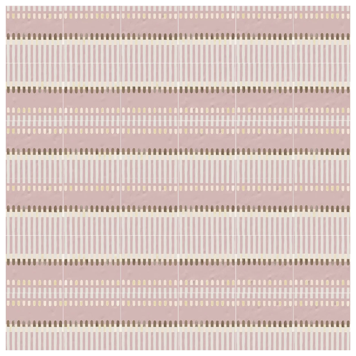 Angela-M to mała płytka ścienna o wymiarach 20x20 cm, która przyciąga uwagę swoim nieoczywistym, geometrycznym wzorem. Dominuje tu miękki róż, połączony z bielą i brązowymi akcentami oraz subtelnie złotymi elementami. Całość utrzymana jest w matowym wykończeniu, co nadaje powierzchni lekkości i unika efektu nadmiernego połysku. To nie jest płytka, która chciałaby krzyczeć, ale raczej zaprasza do uważnego obejrzenia, dzięki zabawie kształtami i kolorami. Znajduje się tu pewien układ rytmiczny, który nadaje prostotę dekoru, jednocześnie nie czyniąc go nudnym.