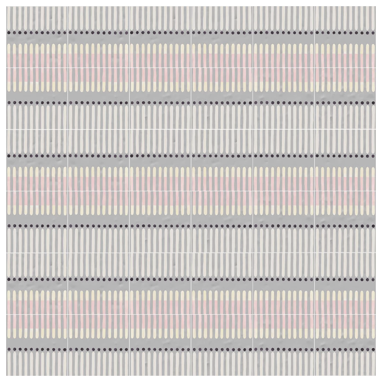 Ta niewielka, matowa płytka Martina-M 20x20 z kolekcji Berta to produkt, który zwraca uwagę oryginalnym wzorem i stonowanymi kolorami. Połączenie delikatnej szarości z jasnymi, kremowymi paskami i czarnymi kropkami tworzy ciekawy układ, choć utrzymany w prostych formach. Ten kontrast barw oraz geometryczna kompozycja sprawiają, że płytka zachowuje równowagę między subtelnością a wyrazistością. Widać tu wyraźnie hiszpańską precyzję i zamiłowanie do trwałych wykończeń, które jednocześnie nie dominują przestrzeni.