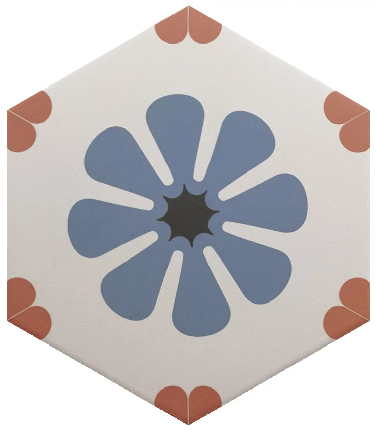 Equipe Coimbra Bella Blue Decor gres 17.5x20 (30658) - mała płytka dekoracyjna matowa heksagonalna