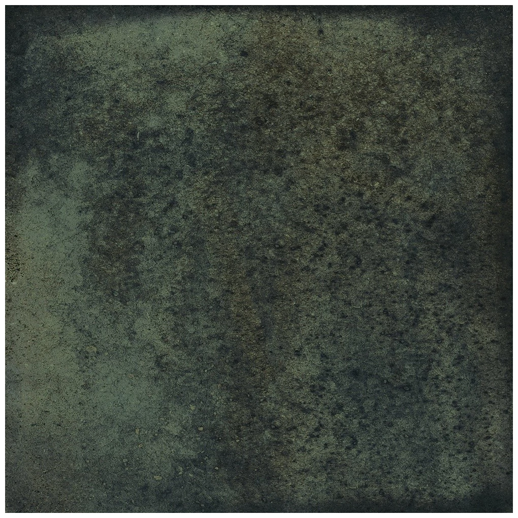 Płytka Legacy Green od Peronda to mały format, 14,8x14,8 cm, co daje spore możliwości aranżacyjne, zwłaszcza jeśli chodzi o detale i wzory. Powierzchnia jest błyszcząca, co dodaje głębi i podkreśla kolorystykę - zieleń w różnych odcieniach, miejscami ciemniejsza i niemal czarna, tworzy nieregularne plamy przypominające powierzchnię lekko postarzanej miedzi lub naturalnego kamienia.