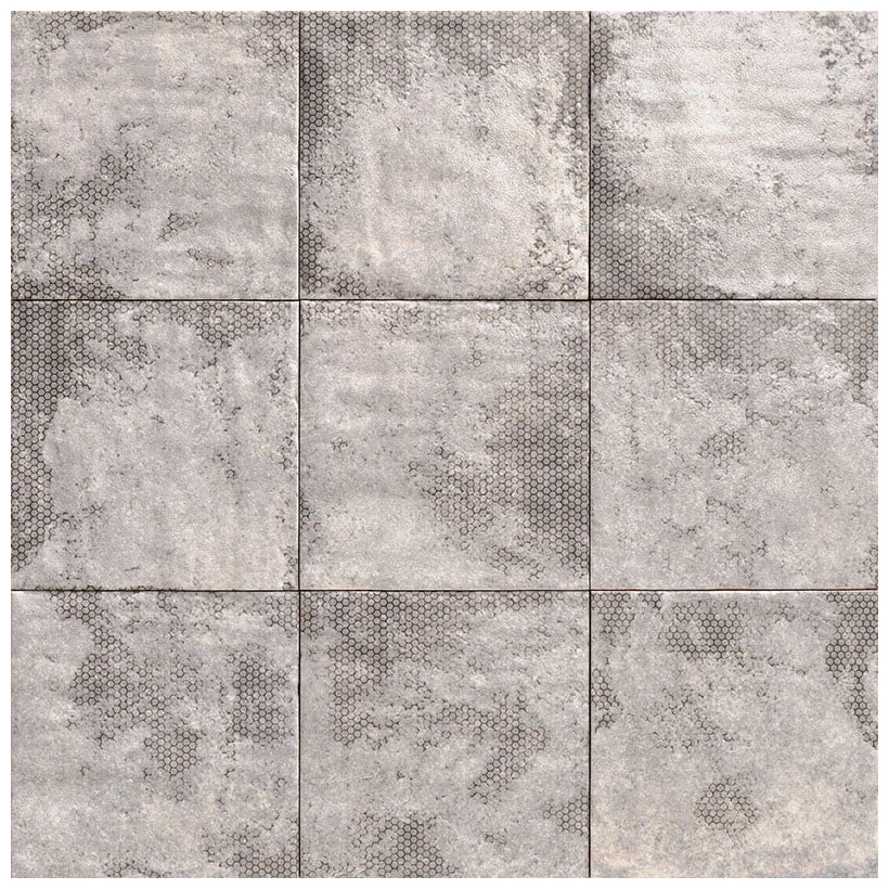 Na powierzchni widoczna jest charakterystyczna struktura, częściowo geometryczna - drobne, wielokątne wzory ostro kontrastują z bardziej rozmytymi plamami na płytce. Ten efekt daje ciekawy, niemal surowy efekt estetyczny, który może zwrócić uwagę w każdym pomieszczeniu, gdzie liczy się temat szarości i minimalizmu.