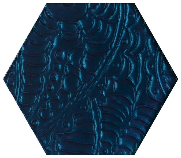 Urban Colours Blue Heksagon dekor to propozycja wpisująca się w nowoczesne rozwiązania aranżacyjne. Jego wyrazista, ciemnoniebieska barwa rzuca się w oczy, a błyszcząca powierzchnia dodatkowo podkreśla głębię koloru. Charakteristyczna, heksagonalna forma płytki pozwala na tworzenie interesujących, geometrycznych układów.