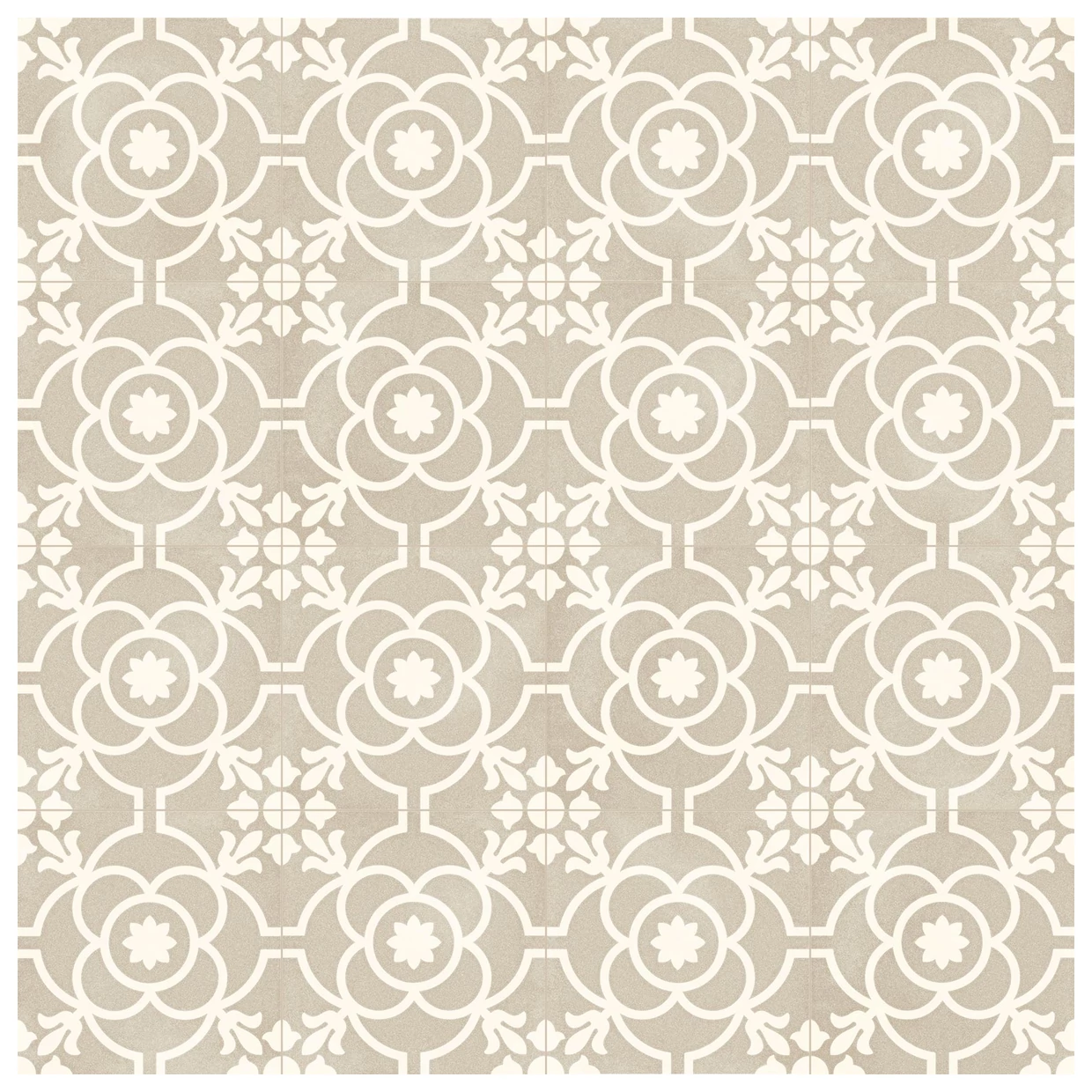 Blomknopp Siena gres 20x20 to kafel o naprawdę charakterystycznym wyglądzie. Neutralna szarość połączona z geometrycznym, symetrycznym ornamentem tworzy wzór, który nie przytłacza, ale jednocześnie przykuwa uwagę. Matowa powierzchnia eliminuje nieprzyjemne odblaski, co jest praktyczne i estetyczne. To nie jest zwykły gres - jest mały i dzięki temu pozwala na ciekawe, zróżnicowane ułożenia, które mogą ożywić każdy salon czy inny pokój dzienny.