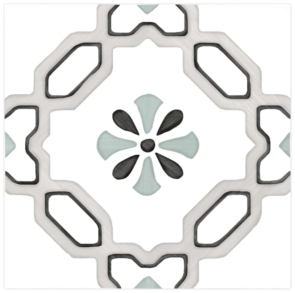 Gres podłogowy Tanger Sand Lily to propozycja dla osób ceniących detal i uniwersalność w jednym. Jego niewielki rozmiar - 12,3x12,3 cm - sprawia, że może tworzyć zarówno subtelne mozaiki, jak i bardziej skomplikowane aranżacje. Powierzchnia ma matowe wykończenie, które eliminuje niechciane odblaski i zapewnia naturalny efekt. Wzór na płytce to przemyślane połączenie czerni, szarości i błękitu ułożone w geometryczny, lekko roślinny motyw, który dodaje wnętrzu rytmu bez zbędnego przepychu.