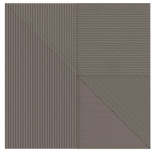 Wzór nie jest jednolity, przez co układ poszczególnych linii daje poczucie logicznego podziału powierzchni. Małe rozmiary 20x20 cm ułatwiają komponowanie różnych układów na ścianie, a wyraźne linie pomagają w tworzeniu harmonijnych zestawień. To propozycja dla osób, które cenią prostotę formy i jednocześnie chcą wprowadzić wyrazisty, ale nie agresywny akcent do przestrzeni.
