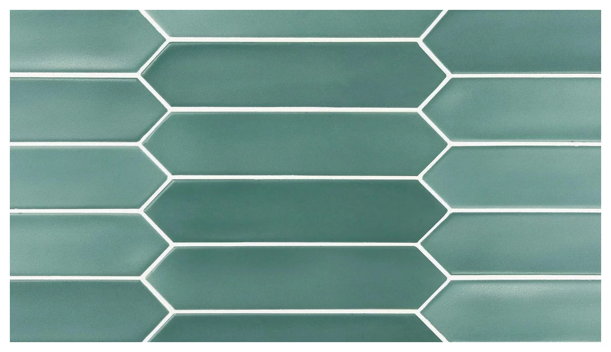 Płytka Lanse Viridian od Equipe to propozycja dla osób szukających matowej glazury kuchennej i łazienkowej w niebanalnym kształcie. Smukłe, prostokątne elementy o wymiarach 5x25 cm łączą się tu w nietypowy układ, który dodatkowo podkreśla oryginalny kolor - zgaszony, niejednorodny turkus, z delikatnym przejściem tonalnym. To nie jest nudna jednolita tafla, a materiał, który przyciąga uwagę detalem i faktem, że ma powierzchnię matową - co znaczy, że mniej odbija światło, a wnętrze dzięki temu pozostaje stonowane, ale interesujące.