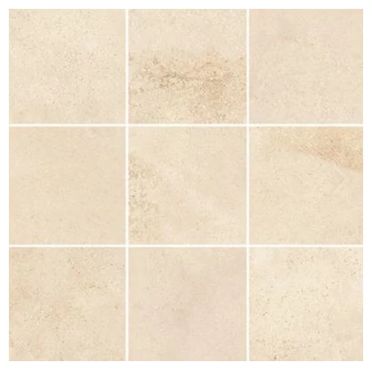 Quenos Beige matt BS to matowa mozaika gresowa betonopodobna do salonu i innych wnętrz, która przedstawia jasne, stonowane beże. Wzór inspirowany surowym betonem, ale jednocześnie łagodny w tonacji. Każdy kwadrat ma delikatne różnice faktury, co sprawia, że powierzchnia nie jest monotonna ani płaska. Widać subtelne przebarwienia i nierównomierności, które dodają autentyczności i nieprzesadzonej naturalności.