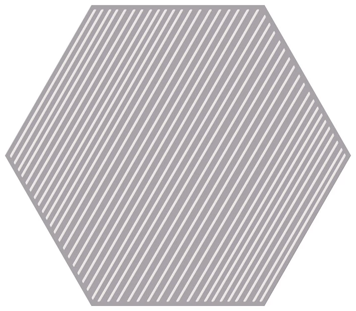 Płytka Cielo E Terra Violette Geometry 3 mat dekor mierzy 19,2x22,1x0,6 cm, a jej sześciokątny kształt zwraca uwagę już na pierwszy rzut oka. Charakterystyczne, ukośne linie pokrywają powierzchnię w sposób uporządkowany, ale nie monotonny, dodając pewnej dynamiki produktu. Jej matowa powierzchnia nadaje subtelności, unikając zbędnego połysku. To połączenie geometrii z delikatnym kolorem fioletu pozwala na ciekawą grę światła i cienia, a przecież dekoracja ścian to nie tylko kwestia koloru, ale również faktury i formy.