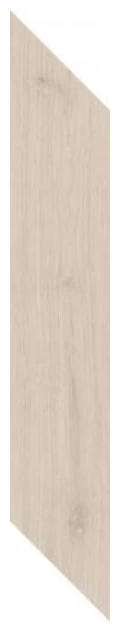 Heartwood Crema Chevron Lewy dekor 9,8x59,8 to płytka dekoracyjna, która dzięki swojemu wzorowi przypominającemu klasyczną jodłę, wprowadza wyraźny motyw struktury drewna. Matowa powierzchnia płytki sprawia, że jest ona mniej refleksyjna, co wpływa na subtelność i naturalność wykończenia. Strukturalna powierzchnia potęguje efekt drewna, oddając charakterystyczne słoje i tekstury, które widoczne są przy bliższym kontakcie.