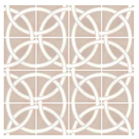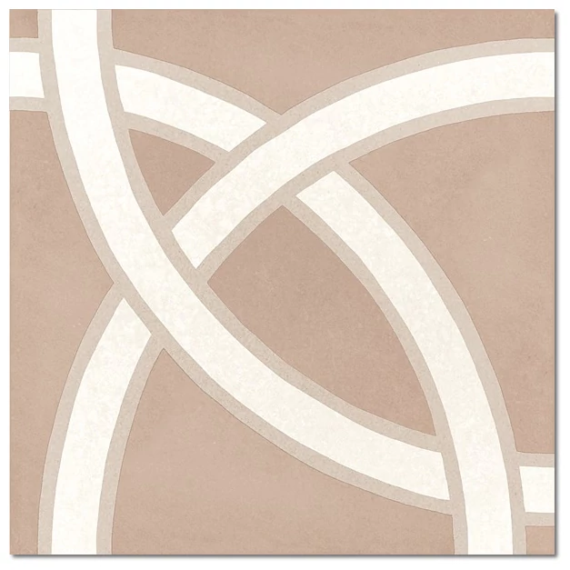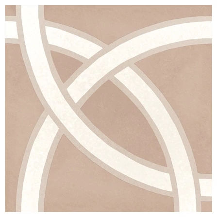 Caprice Deco Loop Pastel to płytka gresowa o wymiarze 20x20 cm, utrzymana w subtelnym pastelowym odcieniu beżu. Dominujący motyw to geometryczne, przeplatające się łuki w dwóch odcieniach - kremowym i jaśniejszym beżu. Ten wzór budzi wrażenie uporządkowanego, ale nie schematycznego rytmu, który dobrze wpisze się w nowoczesne, a zarazem ostrożne aranżacje wnętrz. Matowa powierzchnia eliminuje niechciane odbicia światła i sprawia, że wzór pozostaje stonowany, ale wyraźny.