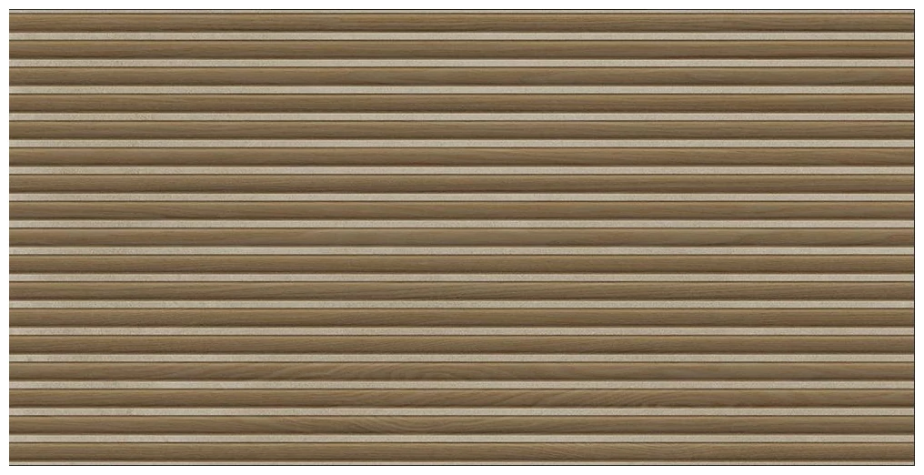 Matowa płytka lamelowa Deia-R Noce Beige pokazuje wyraźny, poziomy wzór lameli w beżowo-brązowej tonacji. Wzór jest regularny, z wyraźnym rytmem cienkich listew i naturalnymi słojami drewna. Wykończenie jest matowe, co redukuje refleksy i pozwala skupić uwagę na strukturze lamel.