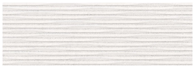 Charakterystyczne, subtelne linie widoczne na powierzchni są równomiernie ułożone i tworzą ciekawy wzór poziomy. To detal o umiarkowanej wyrazistości - nie przeszkadza, ale wyróżnia się przy bliższym spojrzeniu. Kolor biały z delikatnymi szarymi akcentami nadaje się do wnętrz, które potrzebują schludnego, ale nie sterylnego wykończenia.