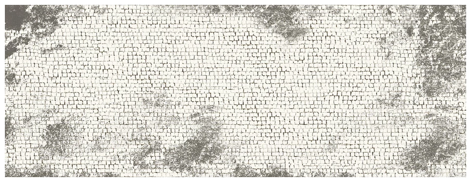 Na powierzchni płytki widoczna jest faktura przypominająca ułożenie drobnych, nieregularnych kwadratów z delikatnymi przetarciami, które nadają jej nieco surowy, a zarazem uporządkowany charakter. Kolory na dekorze to głównie jasne tony z szaro-beżowymi akcentami, co czyni ją neutralną i łatwą do łączenia z różnymi stylami mebli i dodatków.