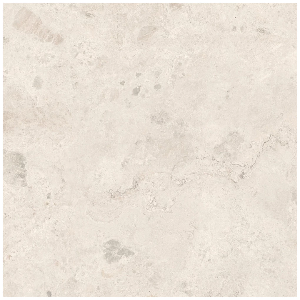 Stratos Breccia Bone to wielkoformatowy gres podłogowy 100x100 cm z kolekcji Stratos Breccia od producenta Geotiles. Powierzchnia w naturalnym, jasnym odcieniu kości słoniowej z subtelnymi, kamiennymi żyłkami - widoczne są delikatne szaro-beżowe inkluzje i łagodne przejścia tonów. Matowa faktura redukuje odblaski i daje uporządkowany, wyważony efekt pod stopami.