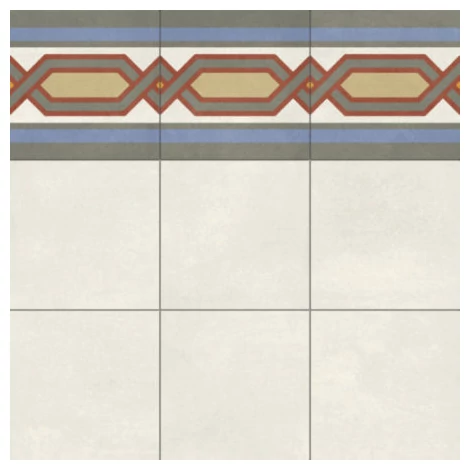 Altea Puerto Frieze Natural to gres, który łączy prostotę z detalem na pozór skromnym, ale jednak zauważalnym. Matowa powierzchnia wnosi do wnętrza delikatność, pozbawioną połysku, dzięki czemu przestrzeń nie męczy wzroku. Geometryczny wzór z dekoracyjną bordiurą w różnych odcieniach - ziemistych brązów, stonowanych niebieskości i beżów - wprowadza pewien porządek, a jednocześnie jest na tyle wyrazisty, że może grać główną rolę w aranżacji.