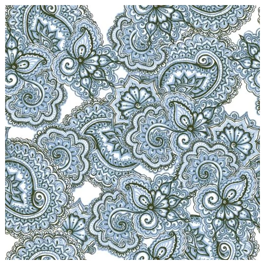 Płytka Paisley Laxmi gres 25x25 z kolekcji Paisley od producenta Keros Ceramika to spory format gresu podłogowego, którego wzór zdecydowanie zwraca uwagę. Dominują tu różnorodne ornamenty w odcieniach szarości i błękitu na białym tle. To matowe wykończenie wycisza odbłyski, przez co powierzchnia zyskuje bardziej stonowany i przyjazny charakter. Ornamentyka jest dość szczegółowa, choć nie zatraca czytelności, dając interesujący, ale nie przytłaczający wzór.