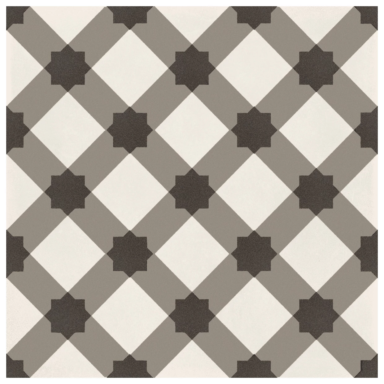 Wzór geometryczny prezentuje regularne motywy, które tworzą rytm i porządek, ale bez efektu nadmiernej monotematyczności. Wymiary płytek to 20x20 cm, co czyni je niewielkimi i łatwymi do komponowania na podłodze w różnych konfiguracjach.