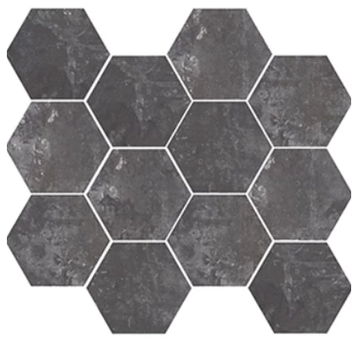 Harlem Anthracite Hexagonal to gresowa mozaika hiszpańska, która wyróżnia się surowym, industrialnym stylem. Płytki mają kształt heksagonalny, czyli sześciokątny, co daje ciekawą i niestandardową strukturę układu. Kolorystyka utrzymana jest w odcieniach głębokiego antracytu z subtelnymi nieregularnościami, które przypominają beton. Takie wykończenie sprawia, że powierzchnia jest matowa, co podkreśla nowoczesny charakter produktu. Mozaika wygląda zdecydowanie na duże formaty, co pozwala na tworzenie ciągłych, mocnych akcentów wizualnych.