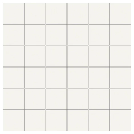 TEX Ivory Natural 5x5 to gres mozaika, która prezentuje się bardzo neutralnie i czysto. Technicznie rzecz biorąc, to kwadraty o wymiarze 5x5 cm, ułożone w dużą siatkę o całkowym rozmiarze 29,75x29,75 cm. Barwa to miękka, naturalna biel bez dodatkowych zdobień czy efektów specjalnych, co sprawia, że mozaika łatwo dopasowuje się do wielu aranżacji. Matowa powierzchnia dodaje subtelnej faktury i eliminuje odbicia światła, co umożliwia bardziej stonowany wygląd. To klasyka w najprostszej formie, nie rzucająca się w oczy, lecz oferująca solidną bazę.