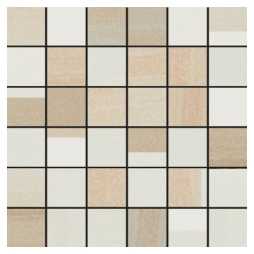 Cabana Topaz 5x5 to mozaika gresowa hiszpańska z kolekcji Cabana, która zwraca uwagę stonowaną paletą kolorów. Neutralne beże i biele łączą się tutaj na powierzchni o wielkości 29,75x29,75 cm, tworząc układ złożony z kwadratów 5x5. Matowe wykończenie sprawia, że powierzchnia nie odbija światła intensywnie, co nadaje przestrzeni bardziej stonowany i naturalny charakter. To rozwiązanie dla tych, którzy szukają mozaiki w stylu vintage, ale z nowoczesnym, technicznym wykończeniem.