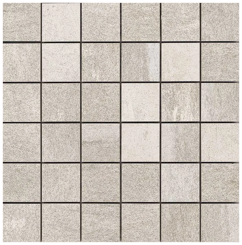 Mixing Grey 5x5 to gres mozaika oferująca subtelne odcienie szarości. Małe, kwadratowe płytki 29,75x29,75 cm ułożone są na siatce, której wzór przypomina naturalny kamień. Matowa powierzchnia podkreśla surową fakturę, pozwalając na osiągnięcie efektu niedoskonałości, które występują w kamiennych elementach. Nie ma tu krzykliwych akcentów czy przesadnej gładkości, kolor i struktura wypadają stonowanie, co czyni je uniwersalnym wyborem do różnych aranżacji.