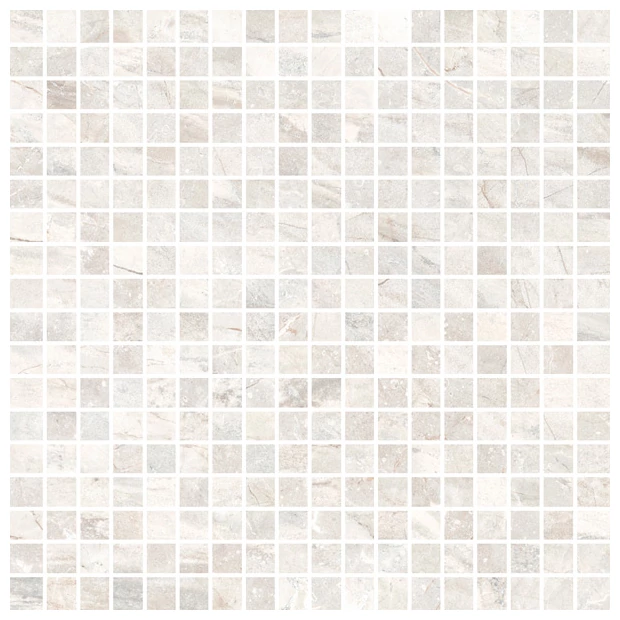 Plentzia-Sp Nacar to mozaika gresowa imitująca marmur, która dzięki swojej jasnej, kremowo-beżowej kolorystyce wprowadza do wnętrza delikatność i lekkość. Układ niewielkich, kwadratowych płytek ułożonych na siatce tworzy ciekawą, lecz nieprzesadnie wyrazistą strukturę. Widoczne na powierzchni nieregularne rysunki i delikatne żyłki dają efekt naturalnego kamienia, ale w bardziej uporządkowanej, geometrycznej formie. Tafla ma powierzchnię lappato - to znaczy, że jest częściowo matowa z delikatnym połyskiem, co pozwala na zachowanie eleganckiego charakteru bez nadmiernego odbijania światła.