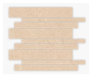 Elementy tej mozaiki mają nieregularne, wąskie i długie formy, co daje efekt dużej powierzchni złożonej z mniejszych fragmentów. Te duże elementy są wyraźne, co pozwala na stworzenie niejednorodnych wzorów układanych według własnego pomysłu lub zgodnie z gotowym projektem. Taka konstrukcja mozaiki może subtelnie zmieniać optykę pomieszczenia, zależnie od kąta patrzenia.