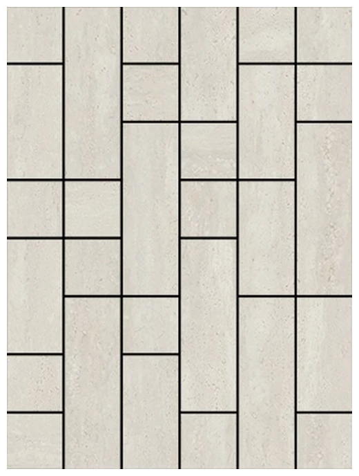 Charonne Blanco R10 to mozaika gresowa o matowej powierzchni, która wiernie odtwarza naturalny wygląd trawertynu. Kolorystyka utrzymana jest w jasnych, stonowanych barwach z wyraźnymi nieregularnościami typowymi dla tego typu kamienia. Zamiast połysku jest delikatna struktura, dzięki czemu całość prezentuje się naturalnie i bez zbędnego przepychu. To nie jest klasyczna polerowana glazura, lecz bardziej surowy i autentyczny efekt trawertynu - z jego typowymi porami i nieregularnościami. Wymiary mozaiki to 29,3 x 39,1 cm, co daje spory format odpowiedni do różnych aranżacji.
