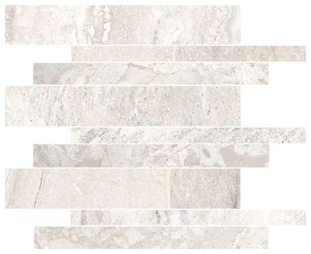 Ułożona w regularne pasy, mozaika zwraca uwagę detalami przypominającymi naturalny marmur z delikatnymi żyłkami i nieregularnościami kolorystycznymi - wszystko to w matowej odsłonie, która eliminuje zbędne refleksy świetlne, a więc jest praktyczna i estetyczna.