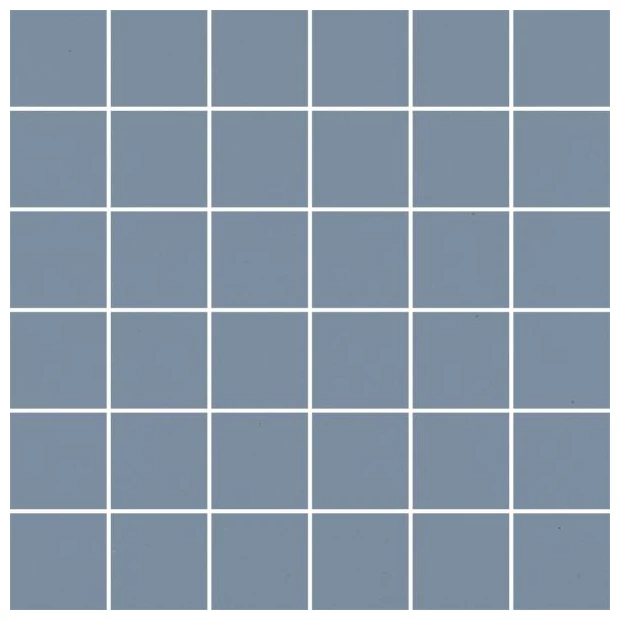 Nowoczesna mozaika gresowa o formacie 29,8x29,8 cm, składająca się z małych elementów o wymiarach 4,8x4,8 cm, oferuje estetykę opartą na prostocie i funkcjonalności. Dominujący odcień niebieski jest stonowany i jednolity, co pozwala na swobodne łączenie z różnymi stylistykami wnętrz. Każdy mały kafelek jest starannie przycięty, dzięki czemu finalna powierzchnia jest wyraźnie zdefiniowana i uporządkowana.
