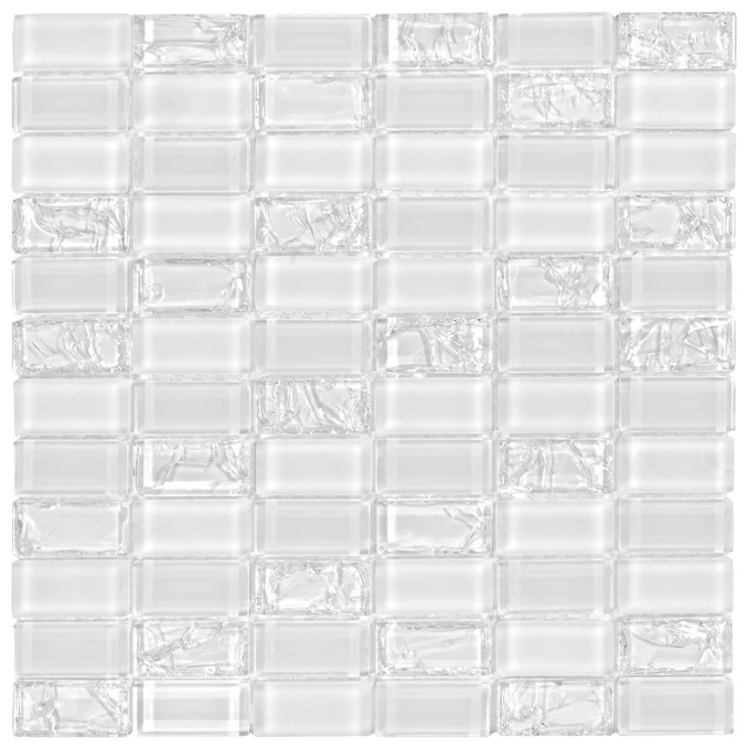 DD3 100 Block MIX to mozaika szklana mrozoodporna o wymiarach 29,8x29,8 cm. To produkt z kolekcji Glass Mix, który skupia się na estetyce opierającej się na łączeniu różnych rodzaju szkła. Wzór stanowią prostokątne płytki ułożone naprzemiennie - gładkie i z widocznymi pęknięciami lub teksturą szkła. Ta mozaika powoduje efekt głębi oraz ciekawą grę światła dzięki swojej przezroczystości i wzorzystej powierzchni. Powierzchnia lappato nadaje subtelny, matowy połysk, który jest zarazem estetyczny i praktyczny.