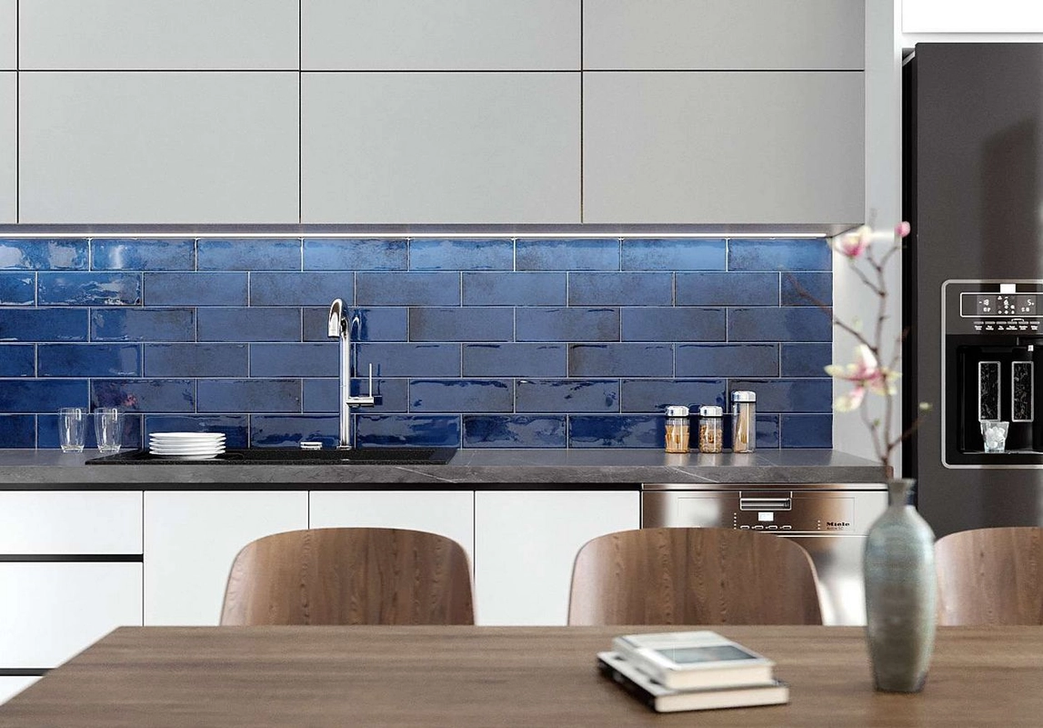 Golden Tile Vintage niebieski płytka ścienna 10x30 - niebieska glazura cegiełka