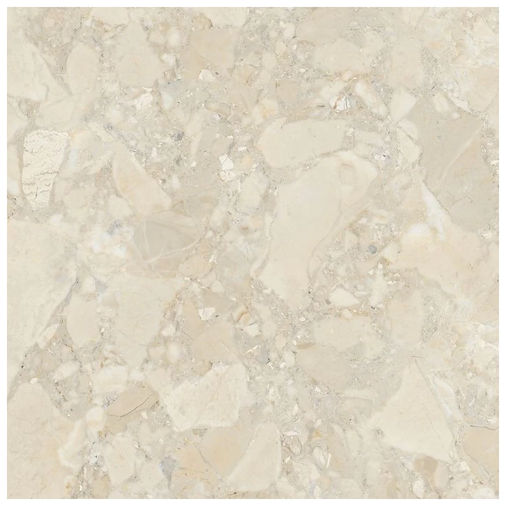LIV Laureto Cream to gres rektyfikowany, który wiernie odwzorowuje strukturę kamienia. Na powierzchni płytki widoczna jest nieregularna, zróżnicowana faktura składająca się z jasnych, kremowych odcieni. Matowa powierzchnia dodatkowo podkreśla naturalny charakter materiału, eliminując niechciane refleksy świetlne i nadając całości subtelny wyraz.