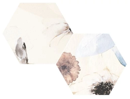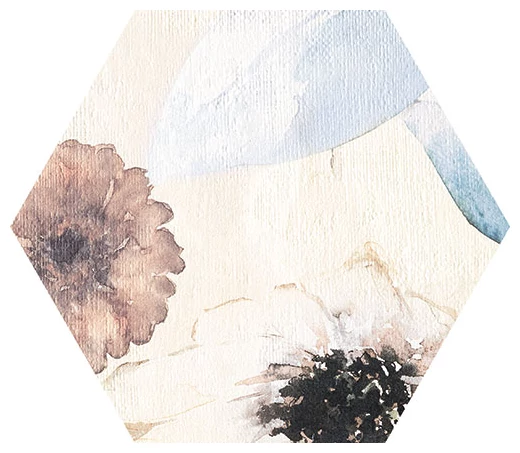 Dzięki wymiarom 19,2x22,1 cm i kształtowi heksagonu, płytka Mild Garden HEX dekor może być stosowana na różnych powierzchniach - jako fragment dekoracyjny lub pokrycie większych partii ścian. To rozwiązanie dla osób, które poszukują niebanalnej dekoracji, ale też praktycznego materiału wykończeniowego.