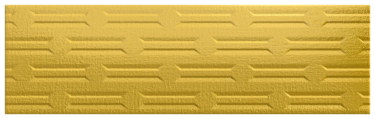 Płytka Glimpse Gold Beat dekor 29,75x99,55 z kolekcji Fabrique od producenta Aparici to propozycja, która wyróżnia się matową powierzchnią i wyraźną strukturą. Ten model nie jest jednorodny w swojej formie - na matowym tle wyczuwalny jest trójwymiarowy, geometryczny wzór, który delikatnie łamie światło. Kolor jest intensywny, złoty - idealnie wpisuje się w estetykę glamour, nadając przestrzeni wyrazistość i nowoczesny charakter. Produkt łączy w sobie zarówno surowość formy, jak i dekoracyjny detal.