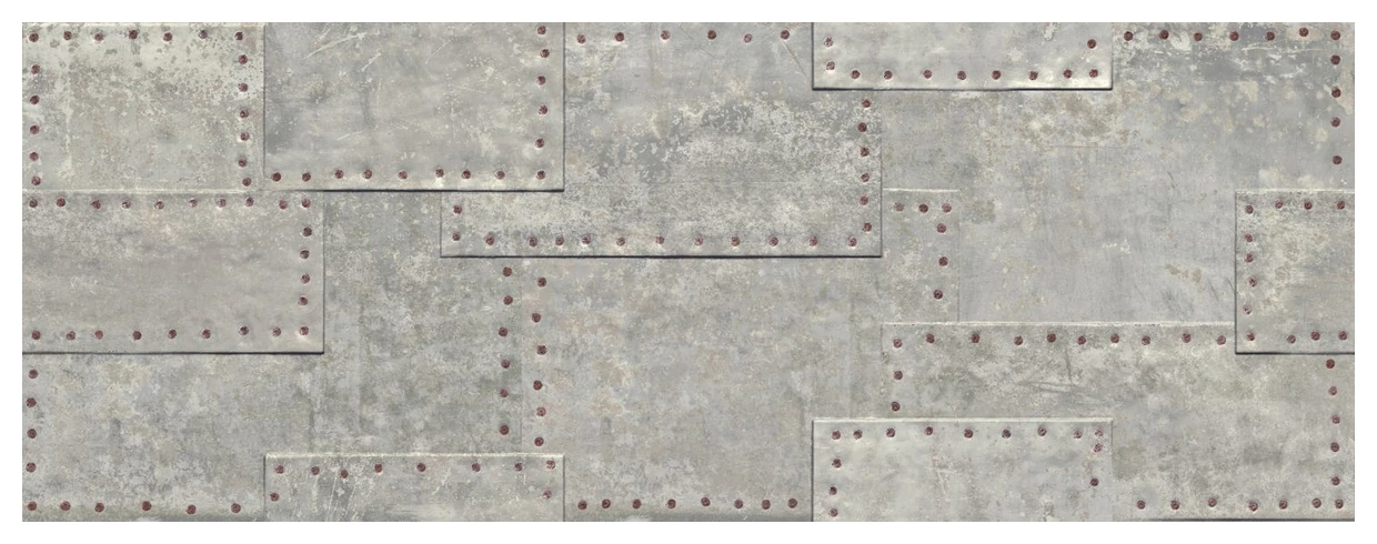 Grunge Grey Fizz to hiszpańska płytka dekoracyjna w stylu industrialnym, która zaskakuje swoją surowością i wyrazistym wzorem. Jej powierzchnia wygląda jak metalowe blachy połączone nitami, co nadaje wnętrzu mechanicznej struktury. Matowe wykończenie doskonale podkreśla ten efekt, eliminując niepożądane refleksy, dzięki czemu płytka prezentuje się naturalnie i autentycznie.