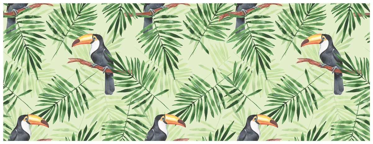 Markham Nature Green dekor 44,63x119,3 to płytka dekoracyjna hiszpańska w stylu retro, wyróżniająca się na pierwszy rzut oka żywą, zieloną kolorystyką liści oraz wyraźnym motywem tukana. Dominują tu różne odcienie zieleni na jasnym tle, co daje ciekawy efekt świetlny i nadaje przestrzeni energii. Wzór jest stosunkowo duży i powtarzalny, co oferuje możliwości zabawy aranżacyjnej, np. z fragmentami jednolitych płytek z kolekcji Markham. Matowa powierzchnia eliminuje refleksy światła i podkreśla naturalność wzoru.