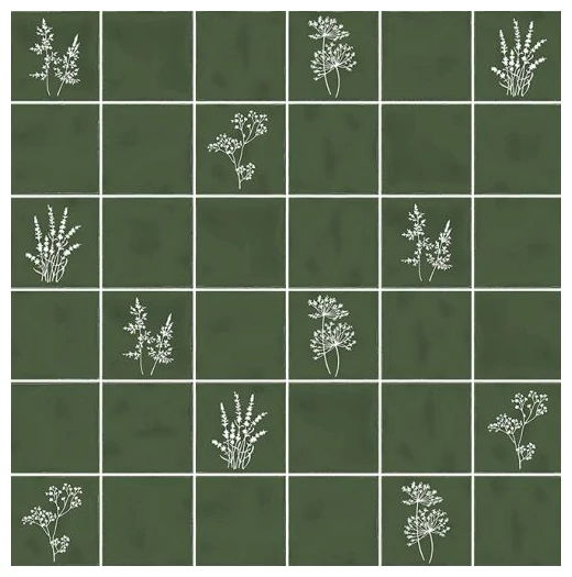 Vives Root Arvum-4 Green dekor 13x13 - płytka dekoracyjna hiszpańska w stylu rustykalnym do salonu