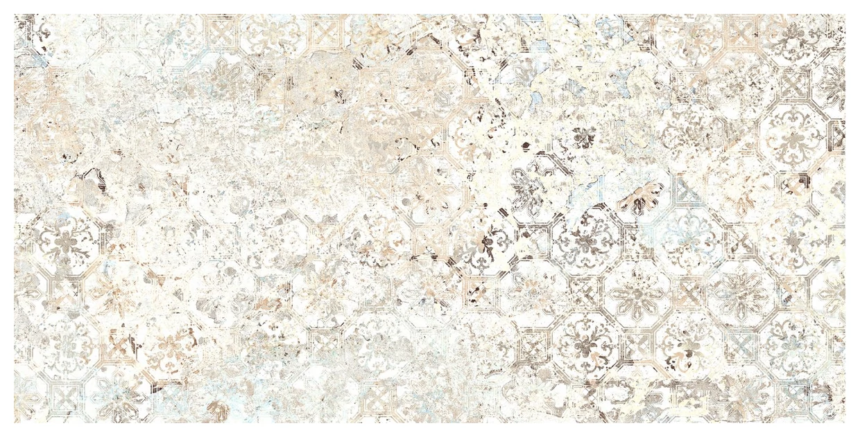 Carpet Sand Natural dekor 50x100 to gres dekor produkcji hiszpańskiej, który od razu przyciąga uwagę dzięki swojemu wzornictwu. Wzory przywodzą na myśl stylistykę wiktoriańską - delikatne, geometryczne formy i ornamenty w naturalnych, stonowanych kolorach. Trudno przejść obojętnie wobec tej płytki, bo mimo że ma matową powierzchnię, to nie traci na głębi i wyrazie. Dzięki połączeniu subtelnych beży, szarości i jasnych tonów, płytka sprawdzi się tam, gdzie szukamy deco z charakterem, ale bez przesady.