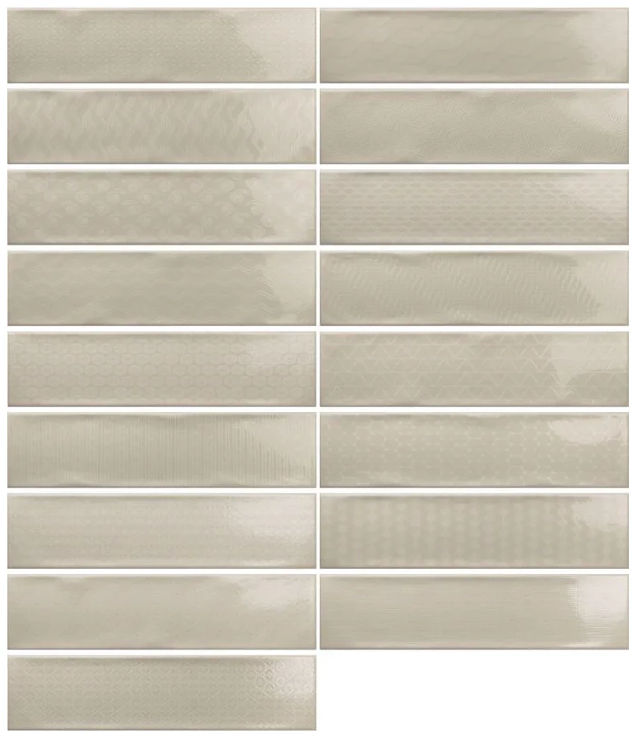 Ribesalbes ocean mink dekor 7,5x30 to płytki o wymiarach 7,5x30 cm, co czyni je idealnym wyborem do mniejszych i większych powierzchni. Dzięki swojemu kształtowi doskonale nadają się zarówno do układania w tradycyjne wzory, jak i bardziej nowoczesne aranżacje, takie jak jodełka czy układ cegiełkowy. Główne cechy produktu to: