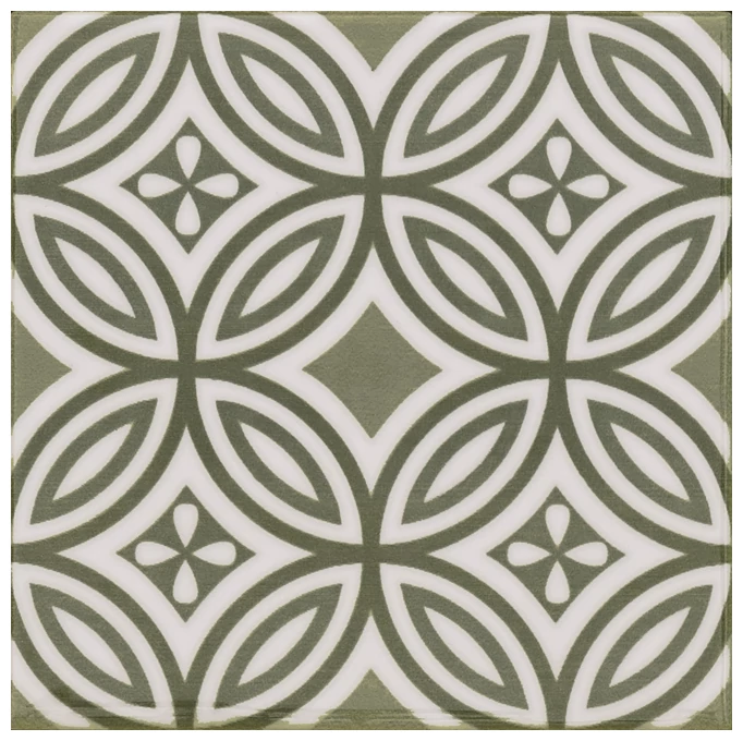 Gama kolorystyczna tego patchworku oscyluje wokół stonowanych i naturalnych odcieni zieleni oraz bieli, które sprawią, że płytka dobrze wpisze się w różnorodne style wnętrzarskie, zwłaszcza tam, gdzie zależy nam na subtelnym, ale zauważalnym akcentowaniu ścian.