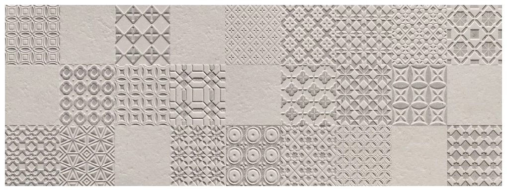 Integrally Grey dekor 32,8x89,8 to glazura dekoracyjna, która wyróżnia się subtelnym, matowym wykończeniem. Wzór patchworkowy obejmuje szereg różnych, wyraźnych motywów o strukturze, które nadają się do użytku w kuchni i łazience. Szarość w różnych odcieniach przeplata się z geometrycznymi i bardziej finezyjnymi formami, co sprawia, że każda płytka jest unikalna, a jednocześnie utrzymuje spójność kolorystyczną.